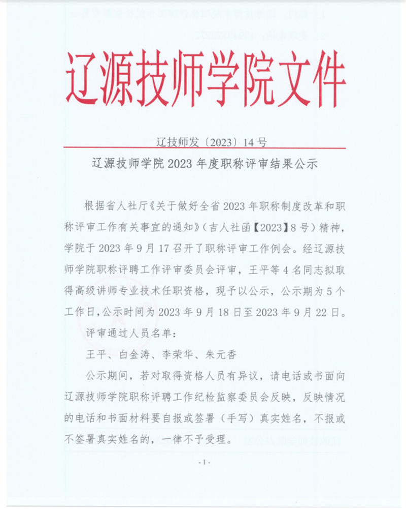 遼源技師學(xué)院2023年度職稱評(píng)審結(jié)果公示
