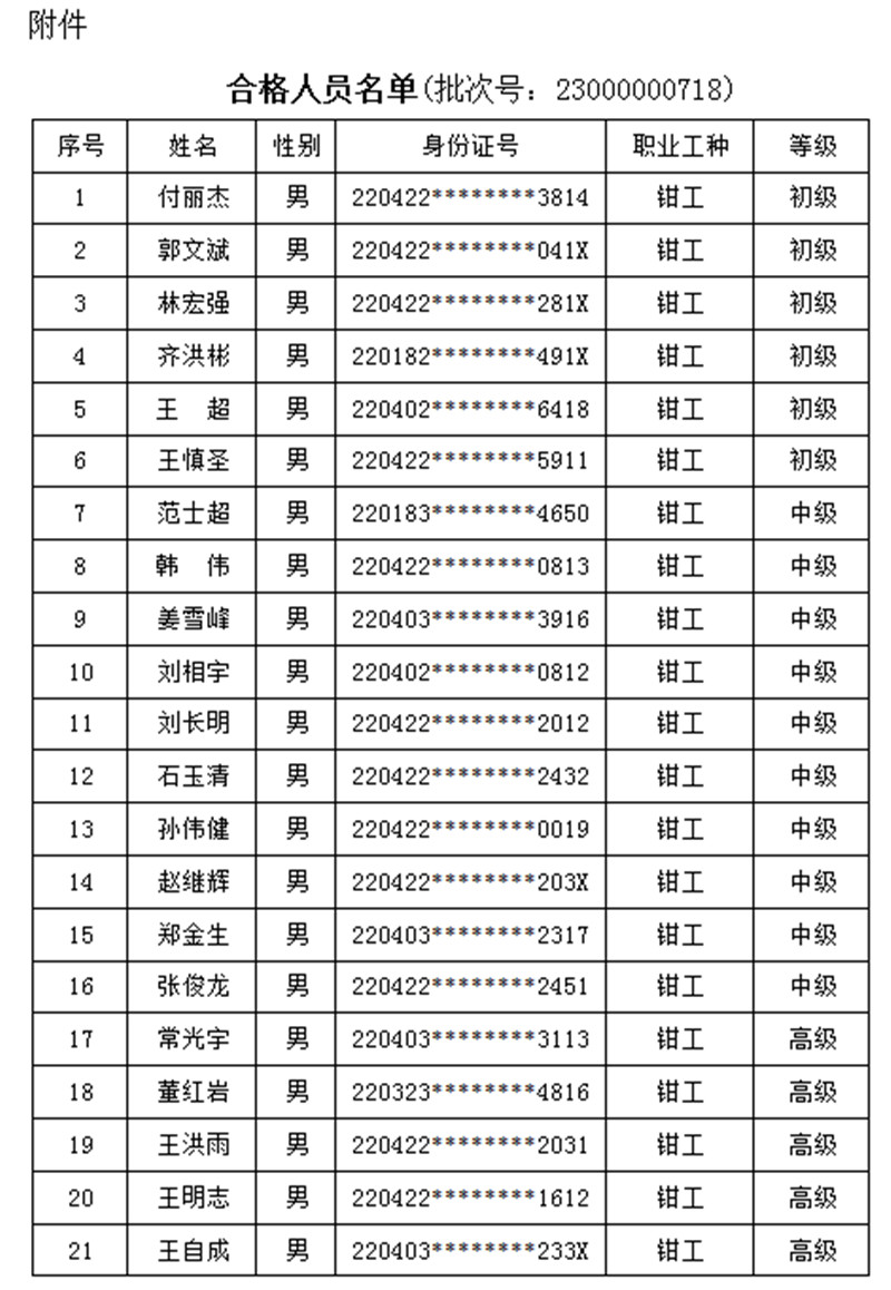 遼源技師學(xué)院 鉗工職業(yè)技能等級認(rèn)定合格人員名單公示