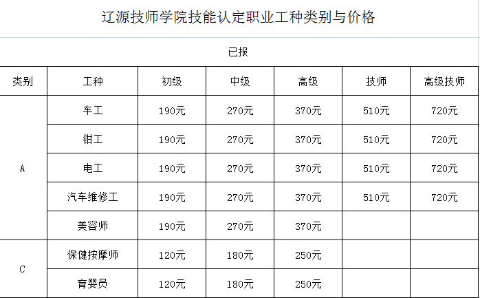 職業(yè)工種類(lèi)別及收費(fèi)標(biāo)準(zhǔn)